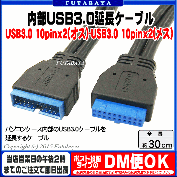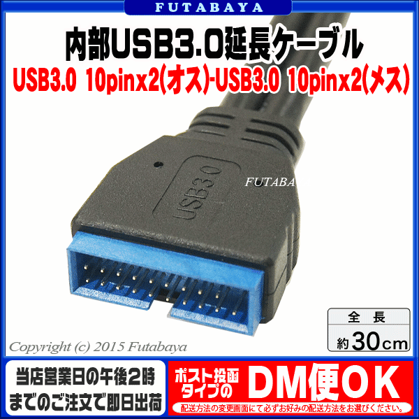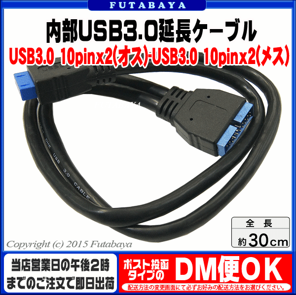 メーカー アイネックス(AINEX) 商品名 USB-013 商品説明 USB3.0ピン10pinx2(メス) USB3.0ピン10pinx2(オス) ケーブル長:約30cm 5Gbpsのデータ転送対応(理論値) 内容量 1個 RoHS ROHS対応 梱包 簡易包装にてお届けいたします。