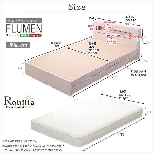 宮、照明付きチェストベッド【フルーメン-FLUMEN-(ダブル)】(ロール梱包のポケットコイルスプリングマットレス付き) 【代引不可】【同梱不可】