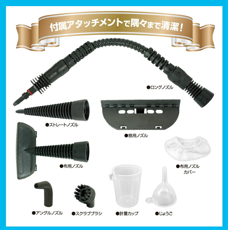 商品説明洗剤を使わず、高圧蒸気で強力洗浄するハンディースチームクリーナーです。
